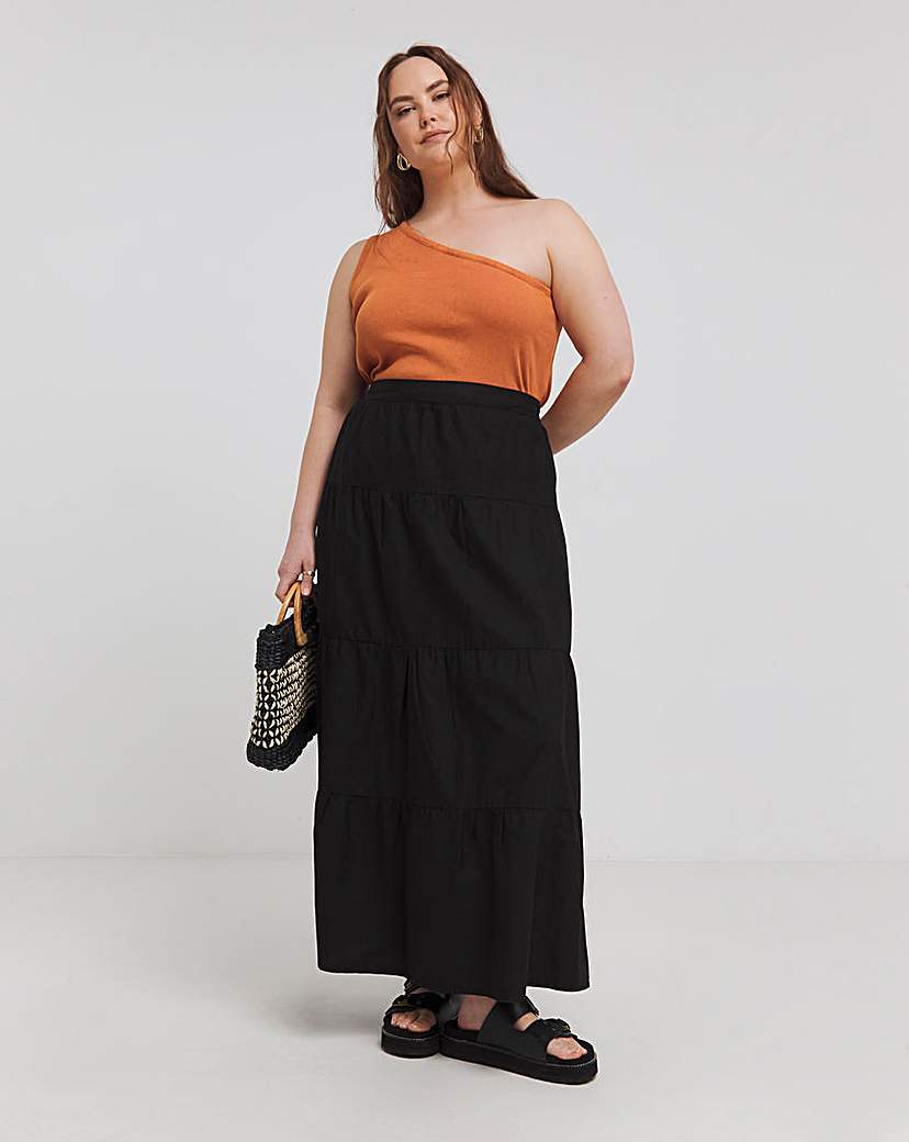 Tiered Cotton Maxi Skirt Black - Simply Be - Size: 10