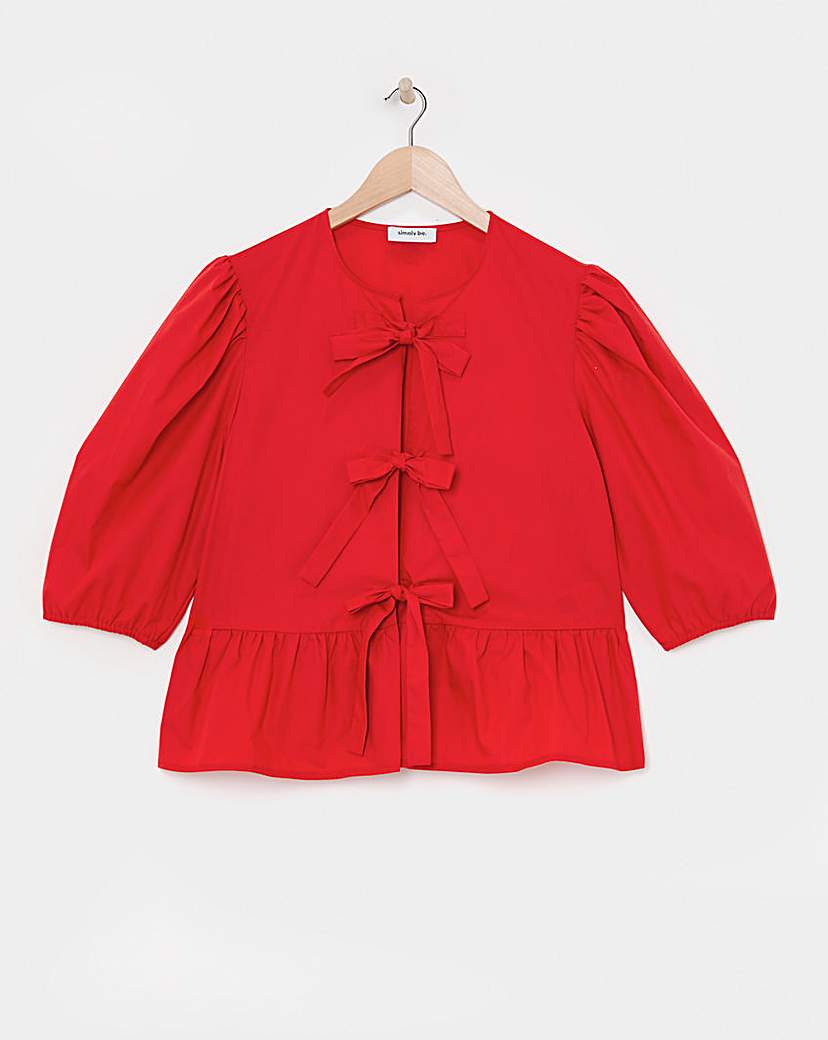Tie Front Puff Sleeve Smock Top RED - Simply Be - Size: 10