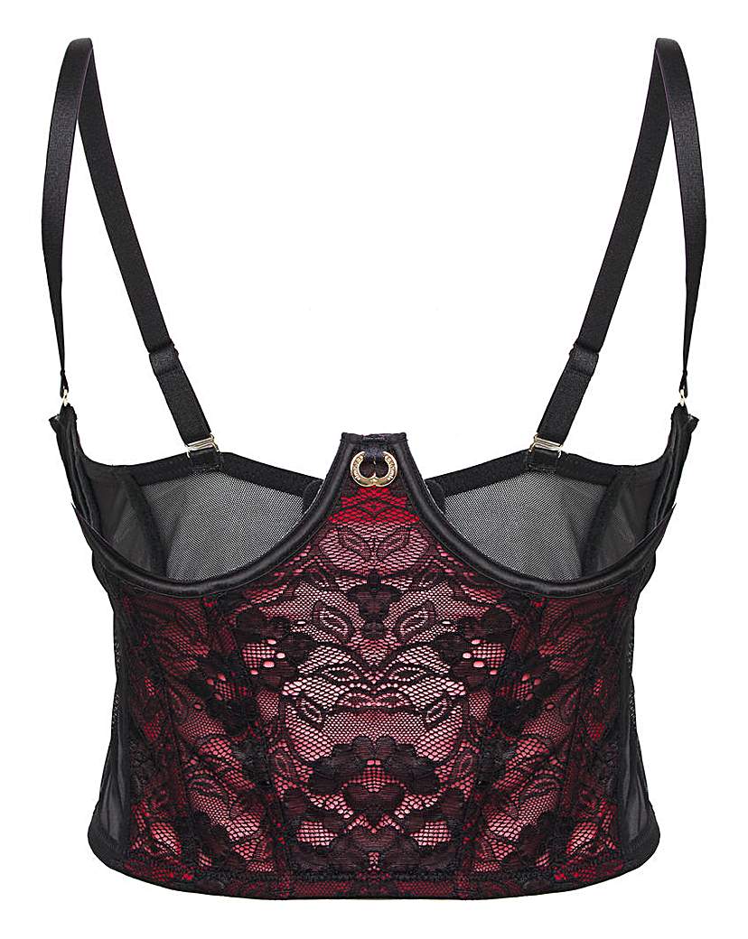 Cupless Underwire Lace Longline Bra Black/Red - Simply Be - Size: 12