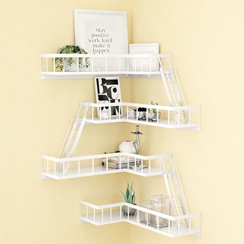 BRLBZXJY Fire Escape Wall Shelf, Modern City Style Corner Wall Shelves, Trinket Figurine Display Knick Knack Shelf Easy to Install, for Bathroom, Living Room & Home Decor, White 4-Tier