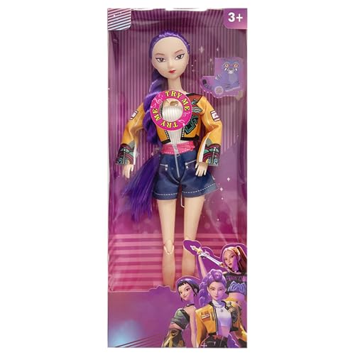 K' Pop Demon Hunters Toys, K*Pop Demon Hunters Dollscan Sing Toys, Huntrix Rumi/Mira/Zoey Doll Christmas, Birthday Gifts For Kids Girls Fans (Purple with music)