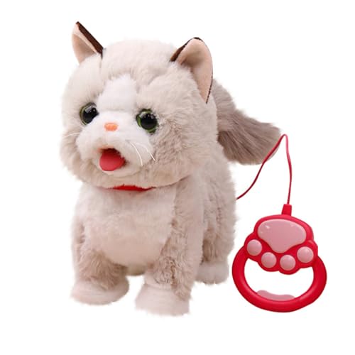 Toys Leash Cat Walking Set Sing Purr And Meow Animated Robot Pet Activity Lifelike Stuffed Animal Remote Control Cute Toy For Kids (A, 24x15x18cm)