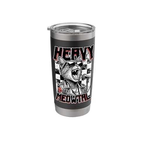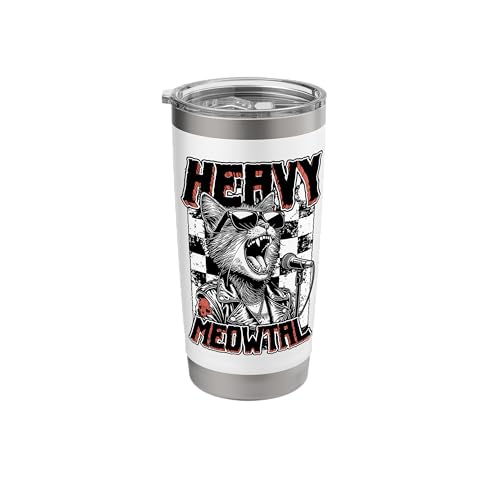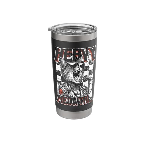 Heavy Meowtal Cat Funny Metal Music Band Singer Musician Stainless Steel Insulated Tumbler