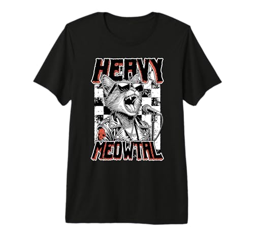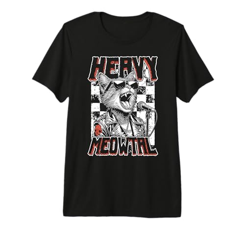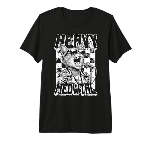 Heavy Meowtal Cat Funny Metal Music Band Singer Musician Premium T-Shirt