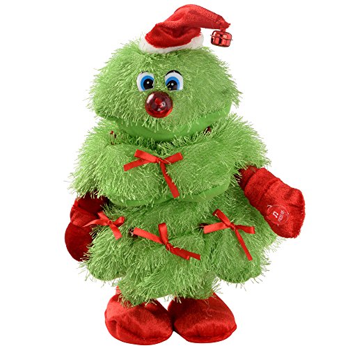 Aceshop Singing Dancing Christmas Tree, 15'' Electric Singing Dancing Christmas Tree with Music and Light Mimicking Twisting Recording Interactive Animated Elk Dolls Toy Xmas Decor Gift (Green1)