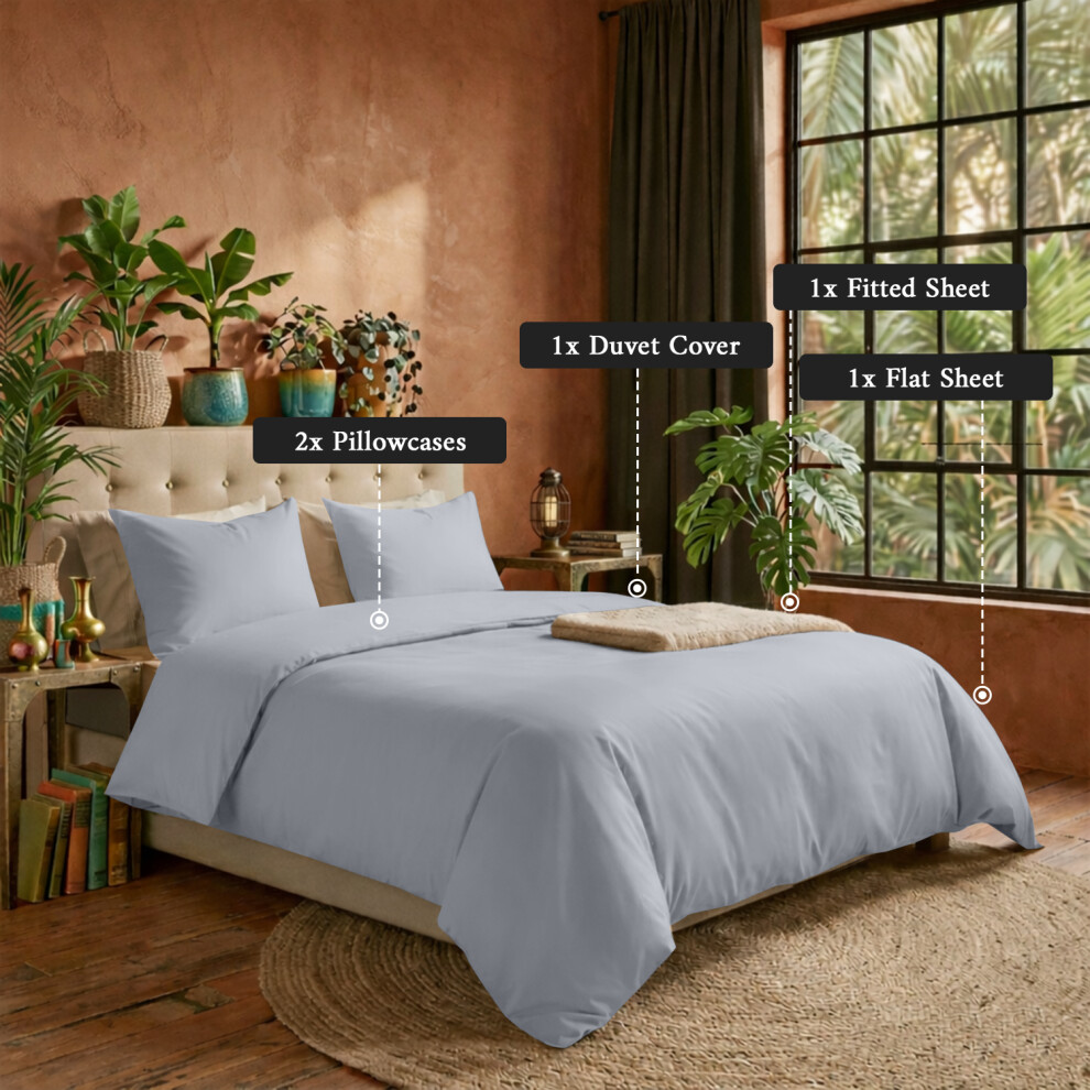 (Silver, Single) 4 Piece Duvet Covers Bedding Set Fitted Bed Sheets