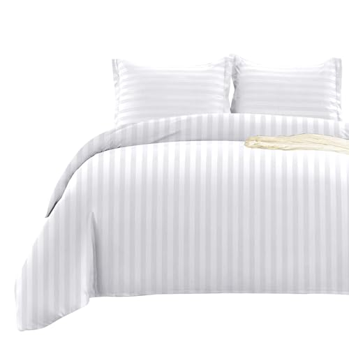 BedLooms Single Duvet Cover Set Reversible Satin Stripes Duvet Covers Soft Breathable Bedding Set with 1 Pillow Case (Stripe White 135x200 cm)