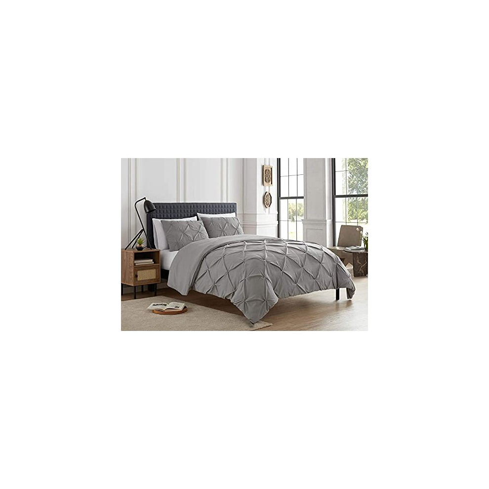 Pinch Diamond Pleated Pintuck Duvet Cover Set 100% Cotton Quilt Covers Bedding Bed Sets Single Double Super King with Pillow Cases (Charcoal, King)