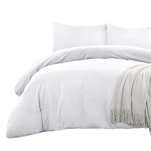 BedLooms Single Duvet Cover Set Plain Brushed Microfiber Duvet Covers with 1 Pillow Case Soft Breathable Bedding Set (Dyed White 135x200 cm)