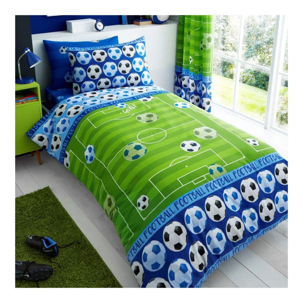 FAIRWAYUK Boys Bedding Single Bed Size, Soccer Court Reversible Duvet Cover Set With Pillow Case, Super Soft, Quilt Covers (Goal Blue, Single)