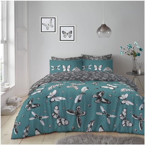GC GAVENO CAVAILIA Butterfly Single Bedding Duvet Cover with Pillowcase | Super Soft Polycotton Fabric Bed Linen | Washable Bed Covers (150x200cm) | Teal