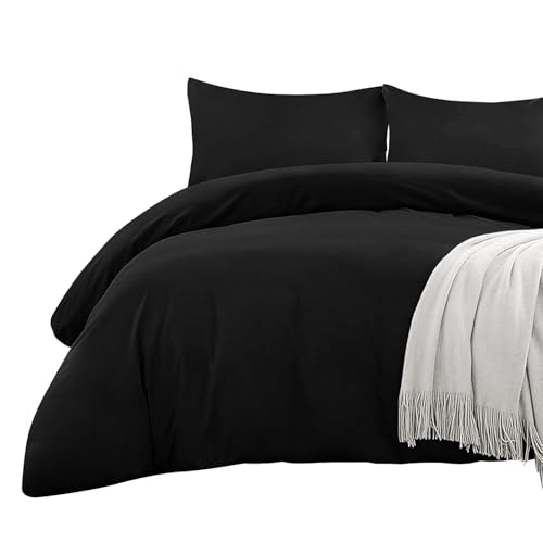 BedLooms Single Duvet Cover Set Plain Brushed Microfiber Duvet Covers with 1 Pillow Case Soft Breathable Bedding Set (Dyed Black 135x200 cm)