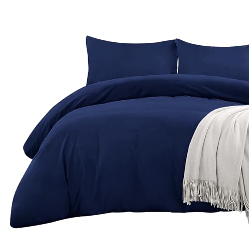 BedLooms Single Duvet Cover Set Plain Brushed Microfiber Duvet Covers with 1 Pillow Case Soft Breathable Bedding Set (Dyed Navy 135x200 cm)