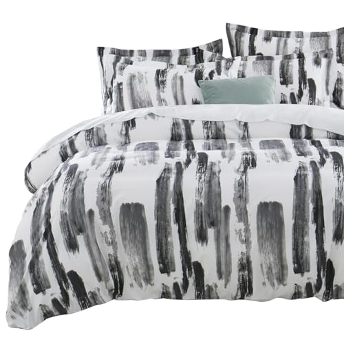 BedLooms Single Duvet Cover Set Printed Brushed Microfiber Duvet Covers Breathable & Hypoallergenic Bedding Set with 1 Pillow Case (Grey Stripe 135x200 cm)