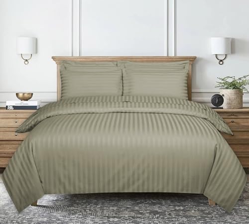 Ev Dekor® Single Duvet Cover Set Hotel Quality Stripes Satin Bedding Single Bed Set with 1 Pillowcase, Reversible Soft Microfiber Breathable Bed Covers - Beige - Single