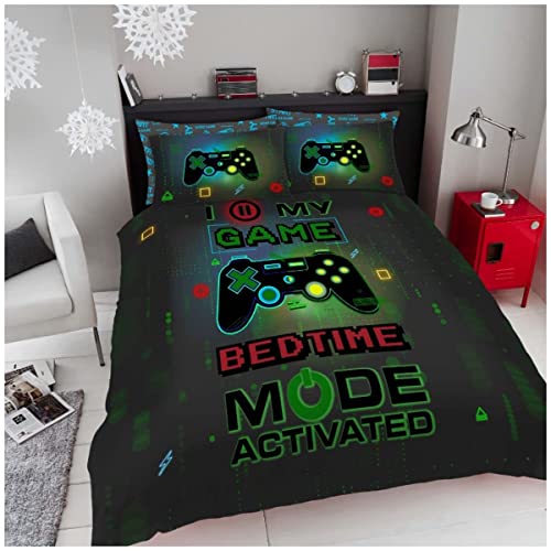 GC GAVENO CAVAILIA Kids Duvet Cover Set, Christmas Gamer Bedding Single Bed Set, Modern Gamepad Comforter Covers, Charcoal/Green