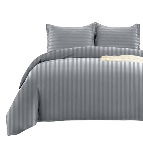 BedLooms Single Duvet Cover Set Reversible Satin Stripes Duvet Covers Soft Breathable Bedding Set with 1 Pillow Case (Stripe Grey 135x200 cm)