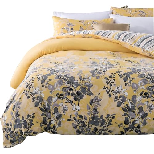 BedLooms Single Duvet Cover Set Printed Brushed Microfiber Duvet Covers Breathable & Hypoallergenic Bedding Set with 1 Pillow Case (Ochre Blossom 135x200 cm)