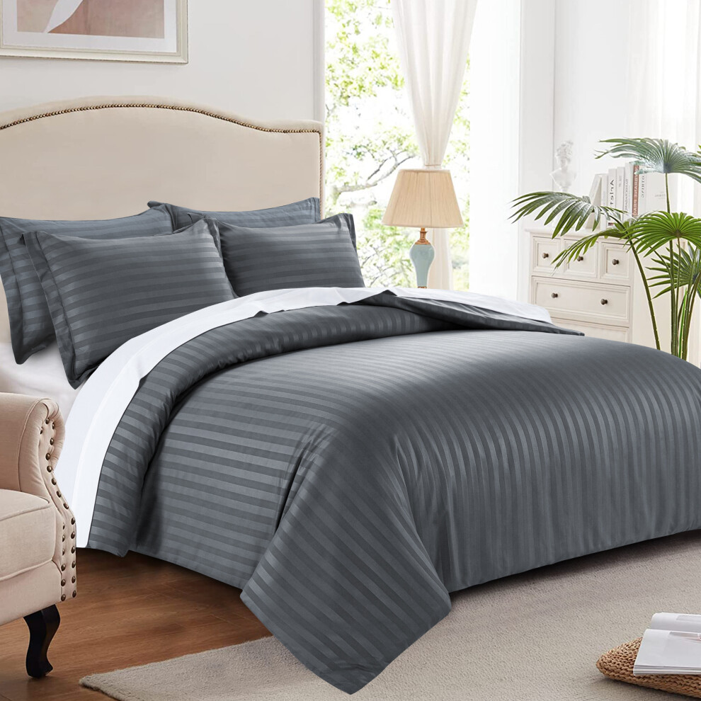 Duvet Cover Set 400 Thread Count 100% Egyptian Cotton Satin Stripe Quilt Covers Hotel Quality White Bedding Sets Single Double King Super King Bed