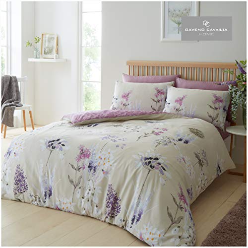 GC GAVENO CAVAILIA Luxury Geometric Duvet, Floral Quilt Set, Polycotton Bed Covers, Eden-Purple, Single