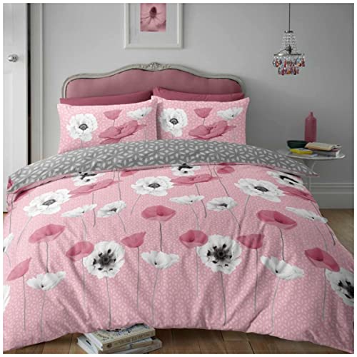 GC GAVENO CAVAILIA Reversible Duvet Quilt, Soft & Comfy Printed Set, Cosy Bed Covers, Polycotton, 3D Poppy-Blush Pink, Single