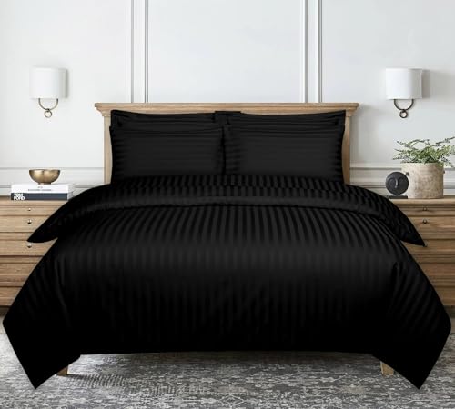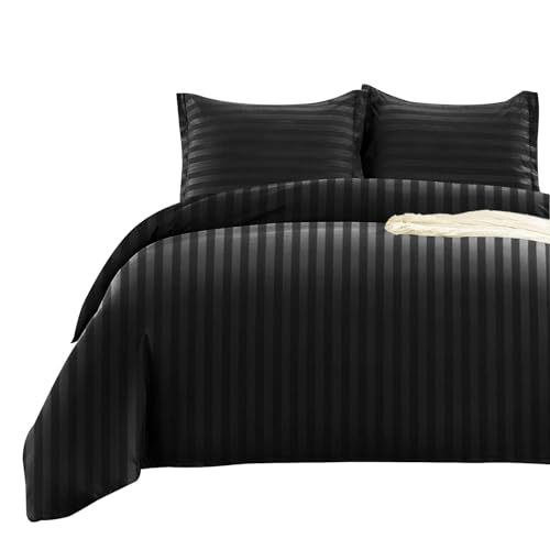 Ev Dekor® Single Duvet Cover Set Hotel Quality Stripes Satin Bedding Single Bed Set with 1 Pillowcase, Reversible Soft Microfiber Breathable Bed Covers - Black – Single