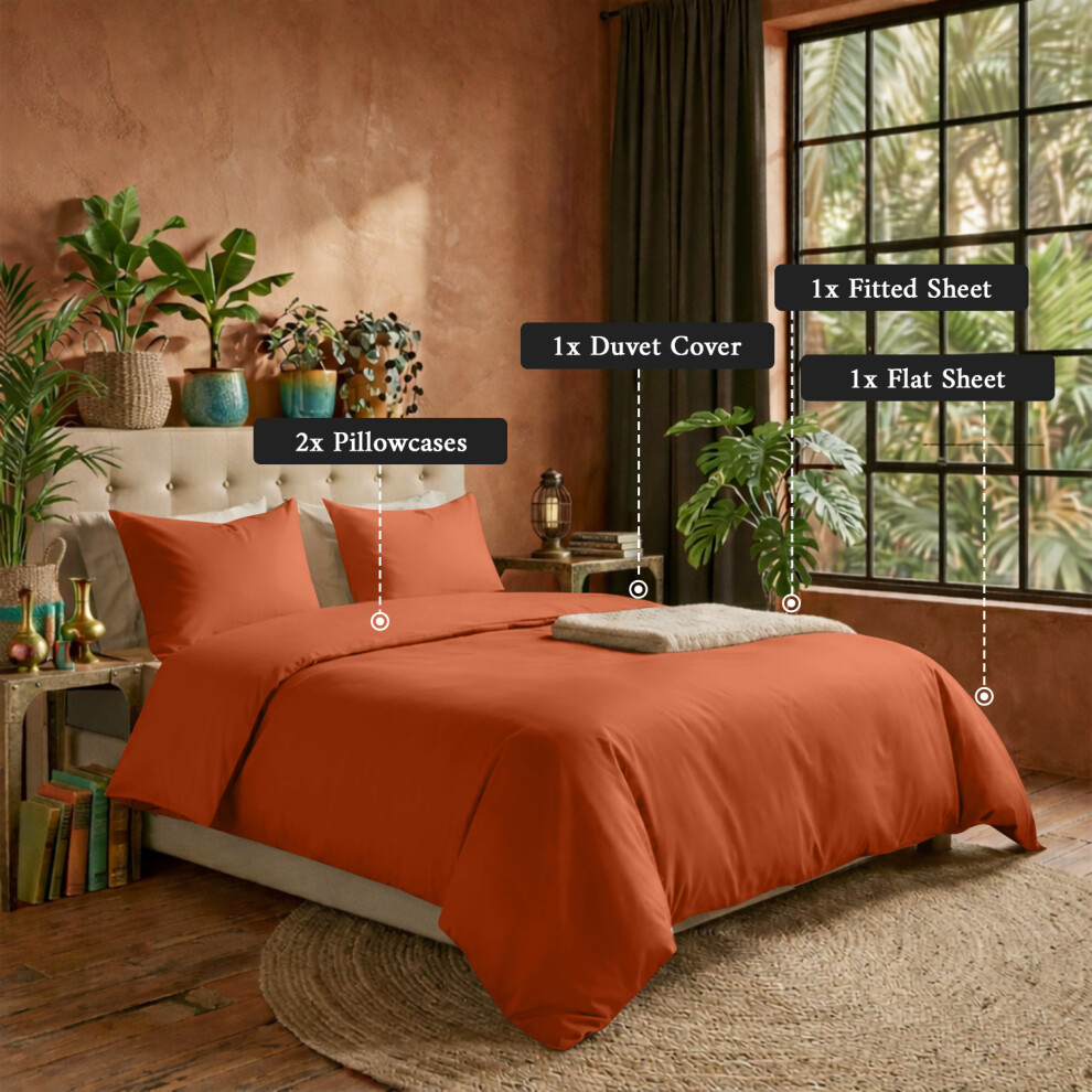(Rust/Orange, Single) 4 Piece Duvet Covers Bedding Set Fitted Bed Sheets