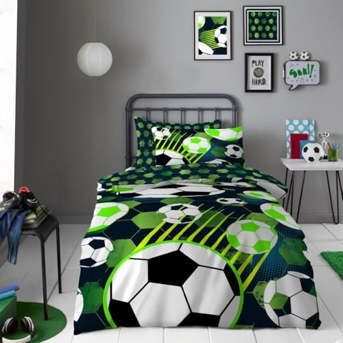 GC GAVENO CAVAILIA Football Duvet Cover Set (135 x 200 cm), Reversible Geomtric Kids Bedding Sets With Pillowcase, Polycotton Quilt Cover Single Bed, Soft Comforter Covers, Green