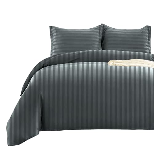 BedLooms Single Duvet Cover Set Reversible Satin Stripes Duvet Covers Soft Breathable Bedding Set with 1 Pillow Case (Stripe Charcoal 135x200 cm)