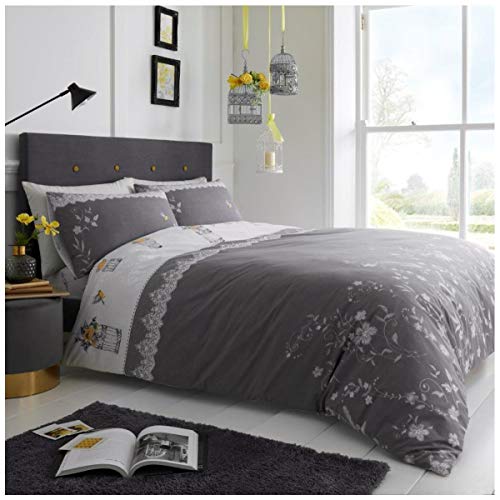 GC GAVENO CAVAILIA Luxury Geometric Duvet, Floral Quilt Set, Polycotton Bed Covers, Lucy-Grey, Single