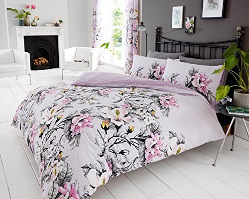 GC GAVENO CAVAILIA Polycotton Reversible Leave Bedding Set, Easy Care Floral Duvet Quilt Cover, Single Bed Covers, Blush Pink-Magnolia Dream (716716)