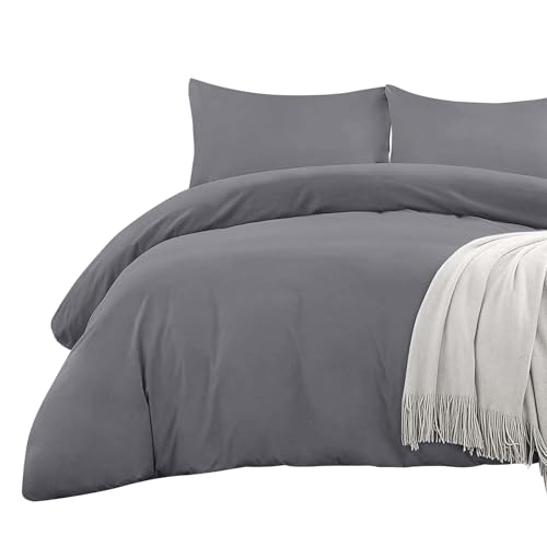 BedLooms Single Duvet Cover Set Plain Brushed Microfiber Duvet Covers with 1 Pillow Case Soft Breathable Bedding Set (Dyed Grey 135x200 cm)
