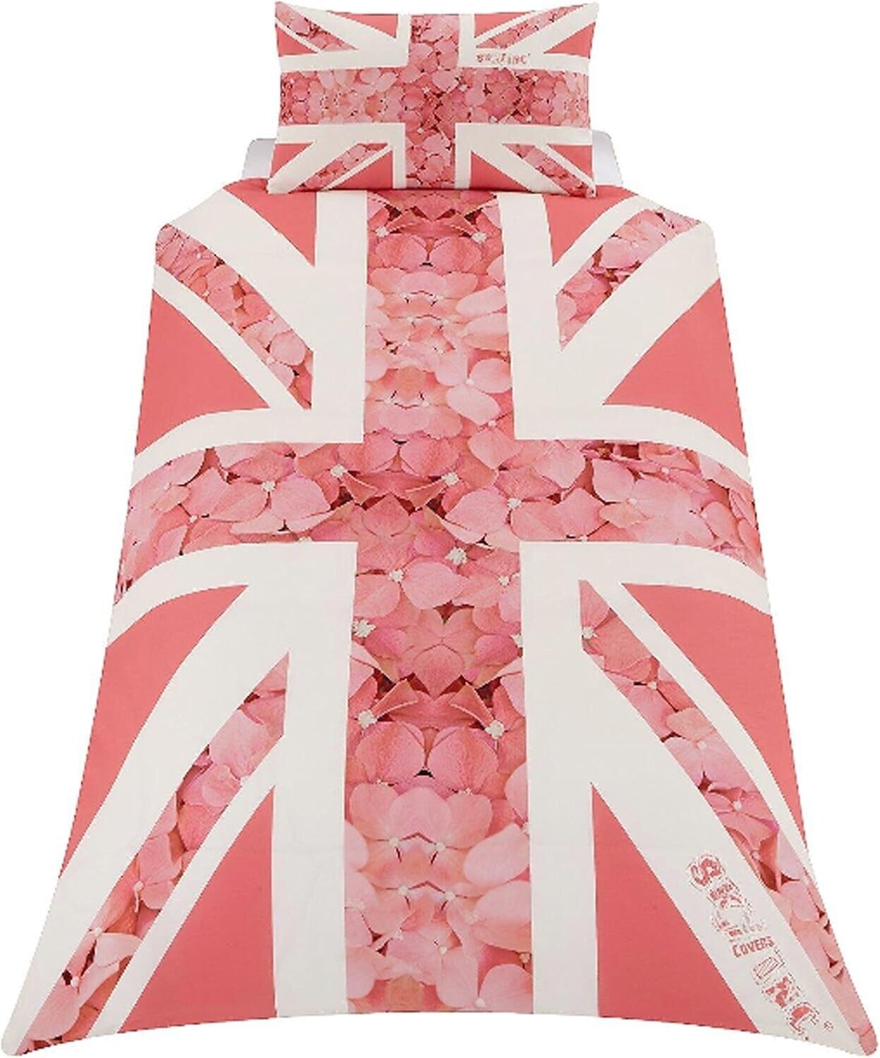 SkyCovers Single Bed Duvet Cover Set Union Jack Pink Reversible Polkadots