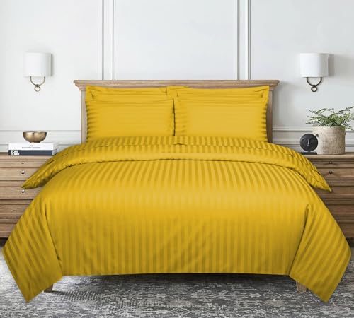 Ev Dekor® Single Duvet Cover Set Hotel Quality Stripes Satin Bedding Single Bed Set with 1 Pillowcase, Reversible Soft Microfiber Breathable Bed Covers - Ochre | Yellow - Single