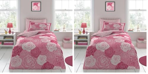 GC GAVENO CAVAILIA Rose Duvet Cover Set (135 X 200 Cm) - Reversible Kids Bedding Single Bed Set With Pillowcase - Polycotton Floral Quilt Covers Pink - Washable Linen (Pack of 2)