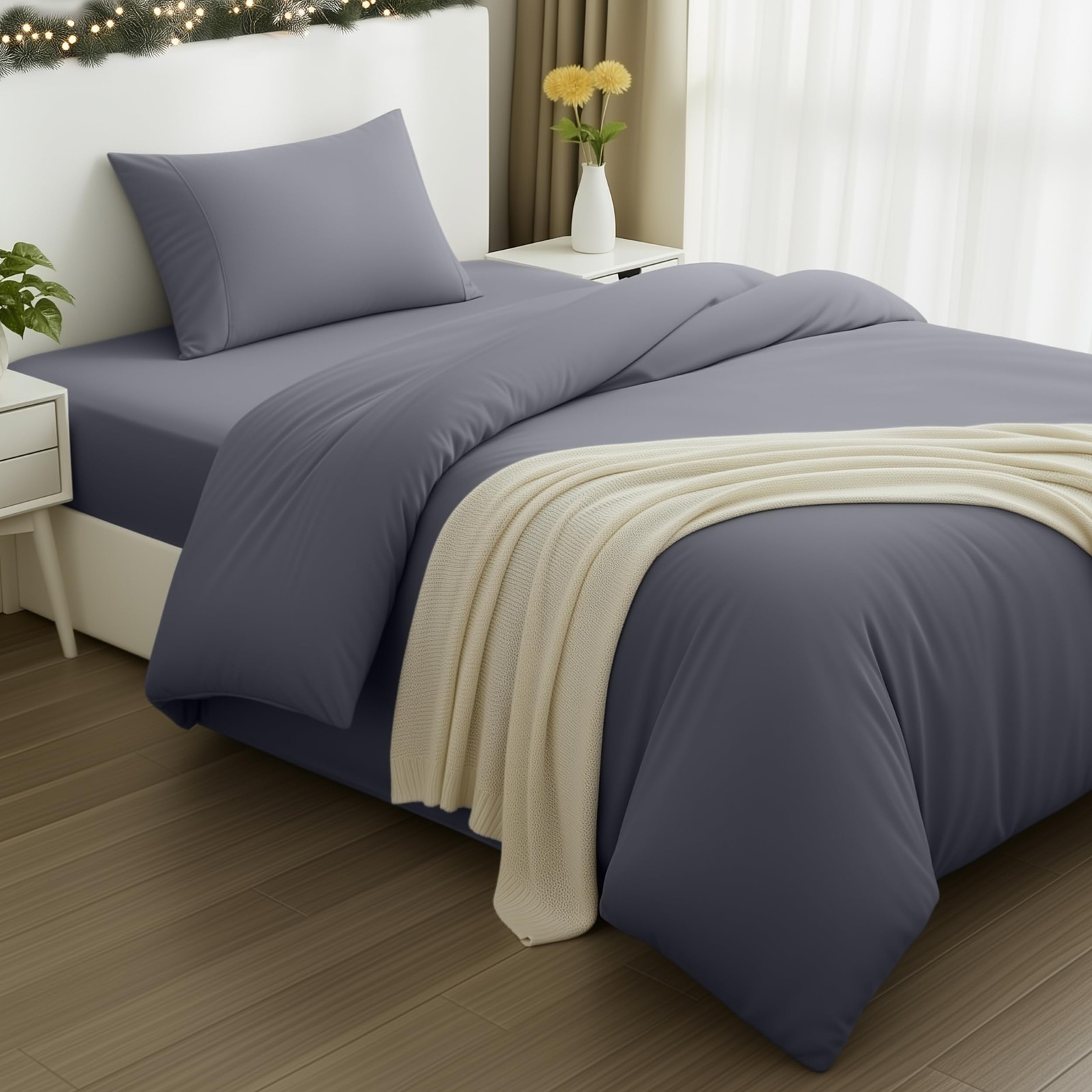 Utopia Bedding 3 Piece Single Bedding Set - Duvet Cover, Fitted Sheet with Pillow case - Soft Brushed Microfiber (Grey)