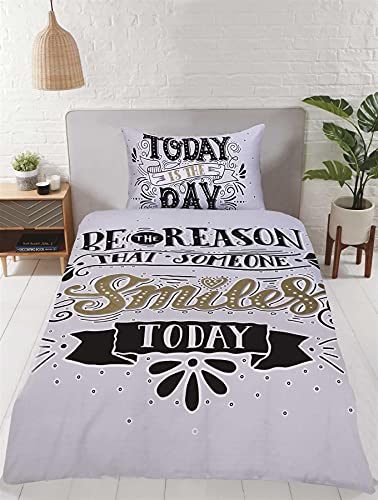 Rapport Home Grey Positivity Typography Duvet Cover Set Single Unisex Bedding Set with Printed Pillowcase