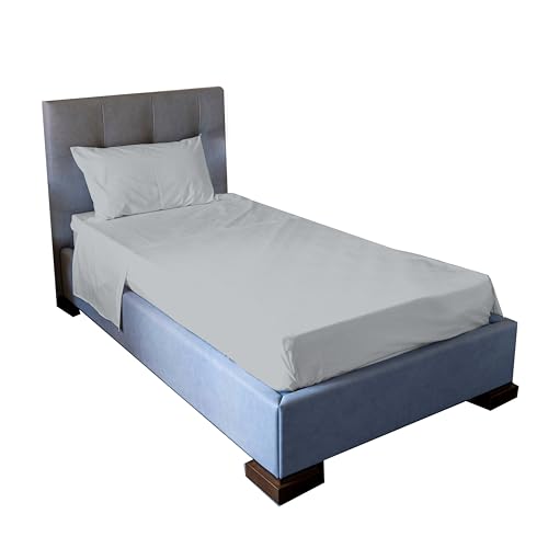 Jenny Sesal Bed Sheet Set – Solid Colour – Made in Italy – Single Bedding Set – Light Grey – Sheet Set + Pillowcases