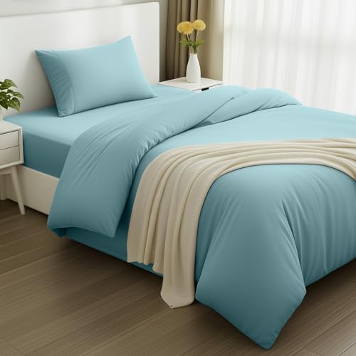 Utopia Bedding 3 Piece Single Bedding Set - Duvet Cover, Fitted Sheet with Pillow case - Soft Brushed Microfiber (Spa blue)