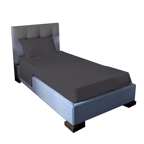 Jenny Sesal Bed Sheet Set – Solid Colour – Made in Italy – Single Bedding Set – Anthracite Grey – Sheet Set + Pillowcases