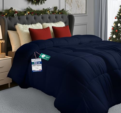 Utopia Bedding Single Duvet – 4.5 Tog Lightweight Coverless All Season Duvet, Soft Breathable Microfiber with Box Stitching, 135x200 cm (Navy Blue)