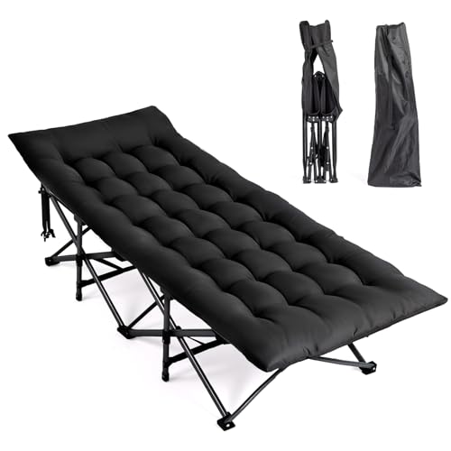 Bonnlo Folding Camping Cot with Thick Pad – Portable Camp Bed for Adults, Single Sleeping Cot with Removable Mattress, 190×71×36cm, Heavy Duty & Lightweight for Travel, Office Nap, Home, Beach (Black)