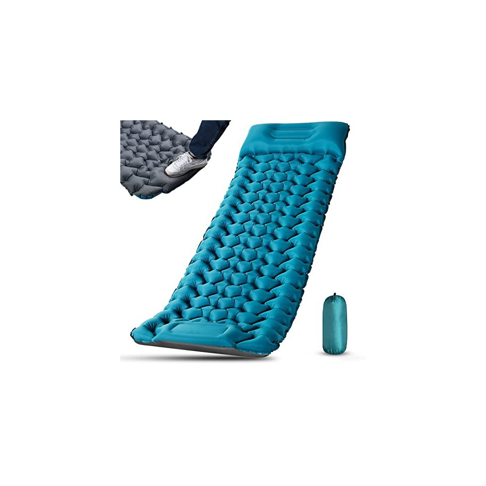 AKSOUL Camping Self-inflating Sleeping Mat: Ultralight & Compact Inflatable Thick Camp Sleep Air Mattress, Lightweight Single Bed Pad for Hiking, Backpacking, Tent (10CM, with Pillow), Peacock Blue