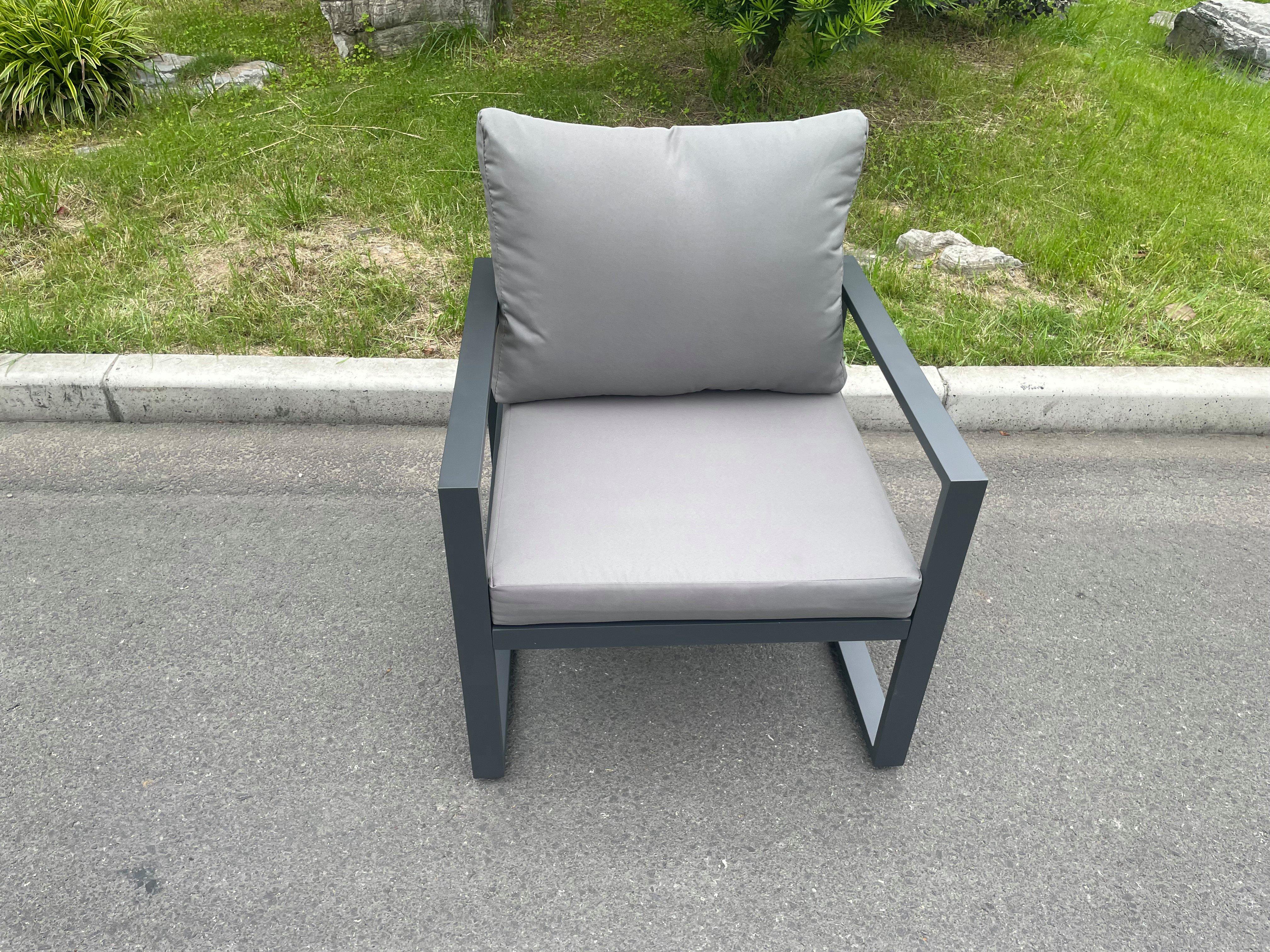 Aluminum Outdoor Garden Furniture Single Arm Chair Sofa With Seat And Back Cushion Dark Grey