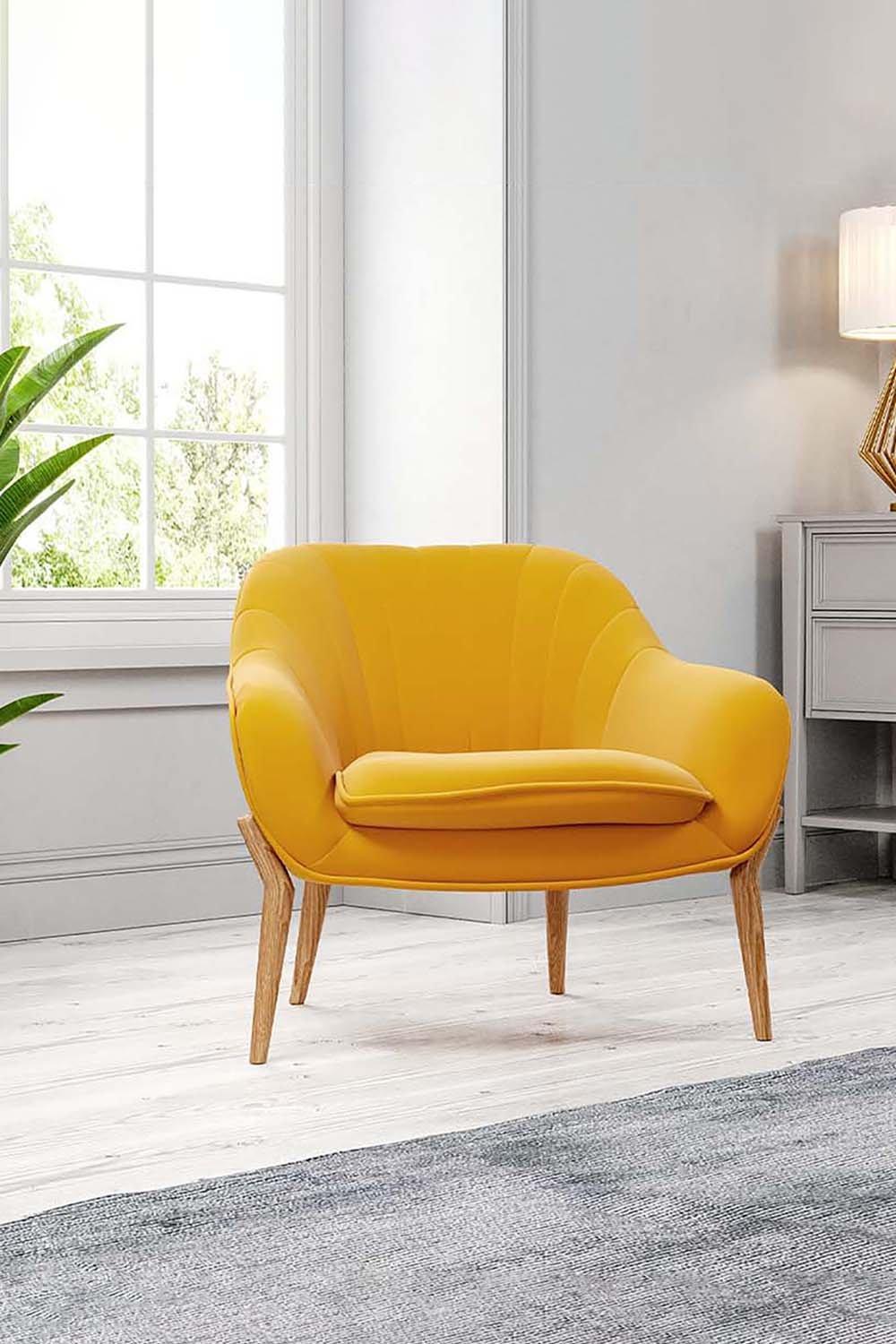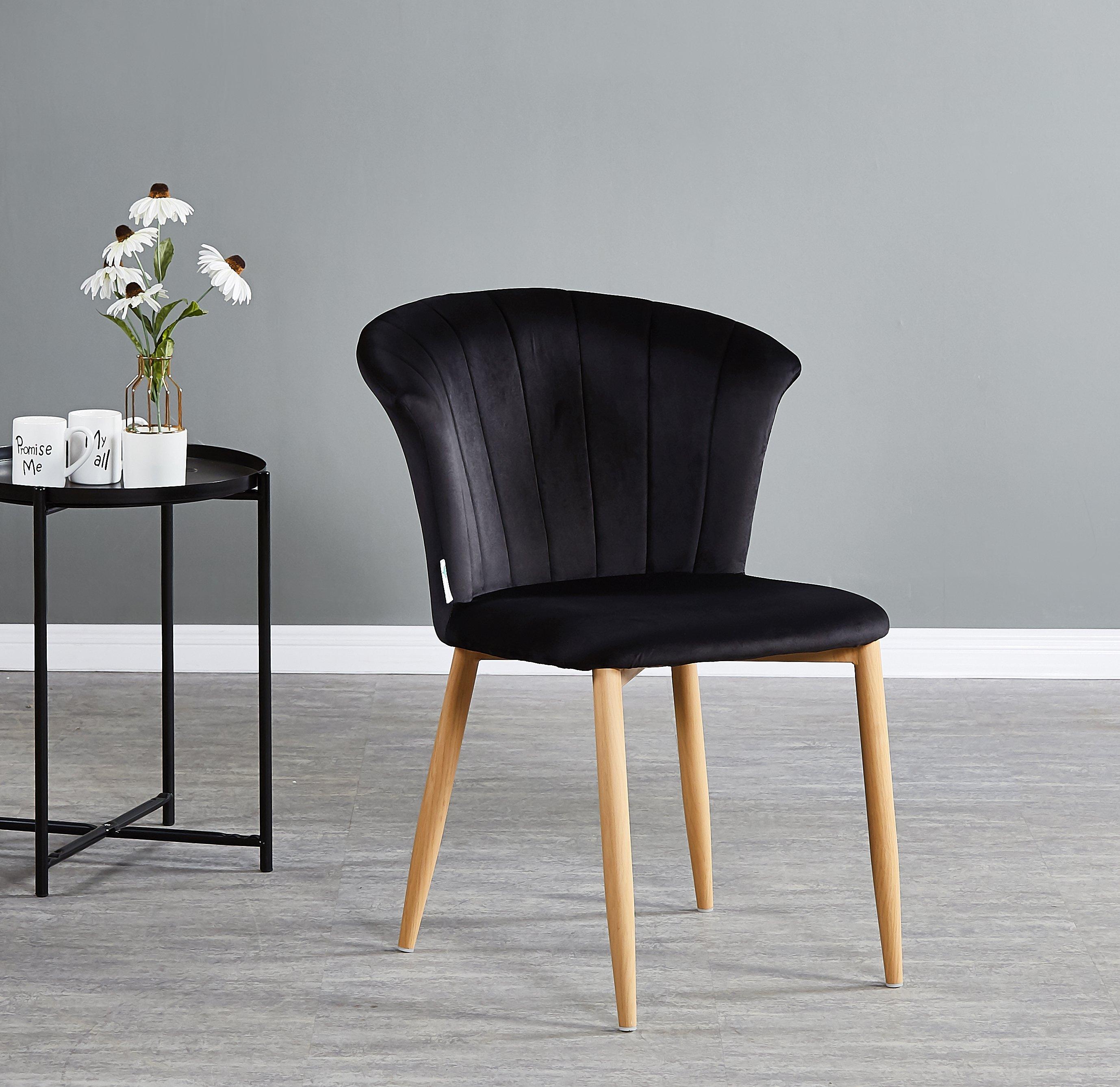 Velvet Fabric Single Sofa Dining Chair Solid Wood Leg Upholstered