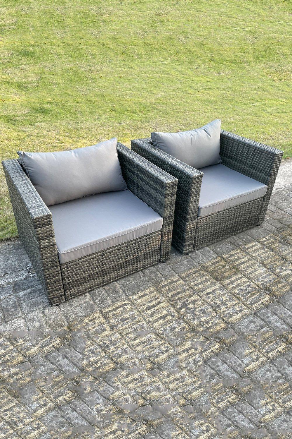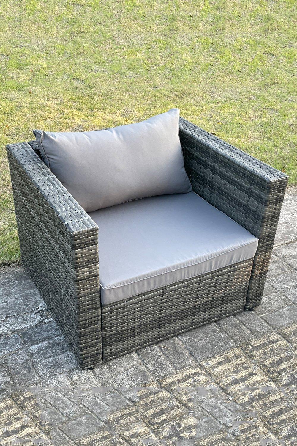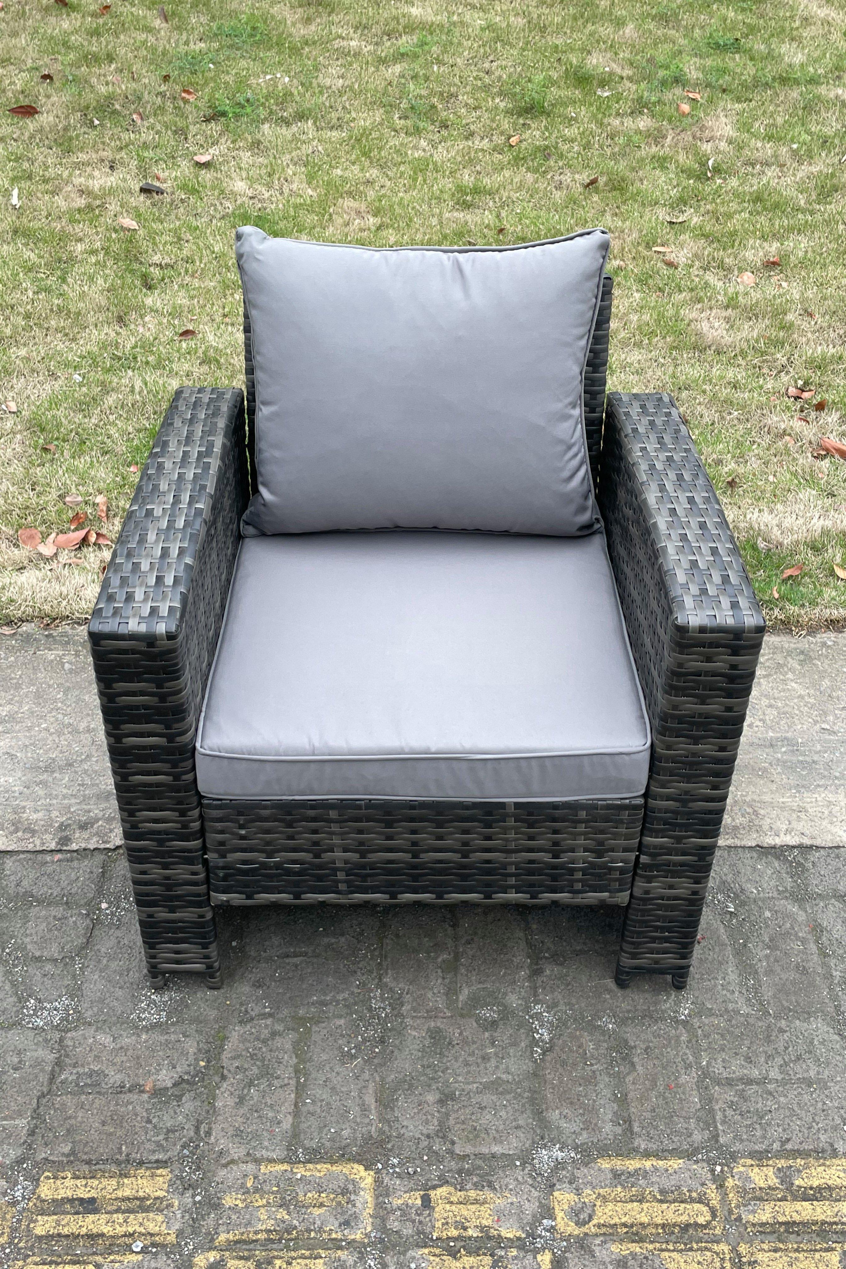 Rattan Garden Armchair Outdoor Single Seater Chair with Cushions & Armrests Grey
