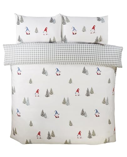 Christmas Bedding Duvet Cover Xmas Gonks Festive Gingham Check Single