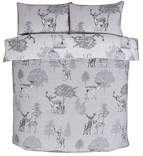 Rapport Home Christmas Festive Woodland Stag Single Duvet Set (135 x 200 cm) – Elegant Piped Trim Grey Bedding Bed Set Warm & Cosy 3-Piece Set With Popper Closure