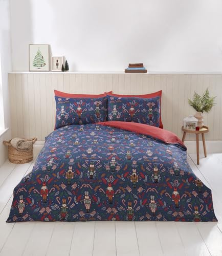Rapport home Christmas Bedding Set Nutcracker Microfibre Duvet Cover Set Single Navy