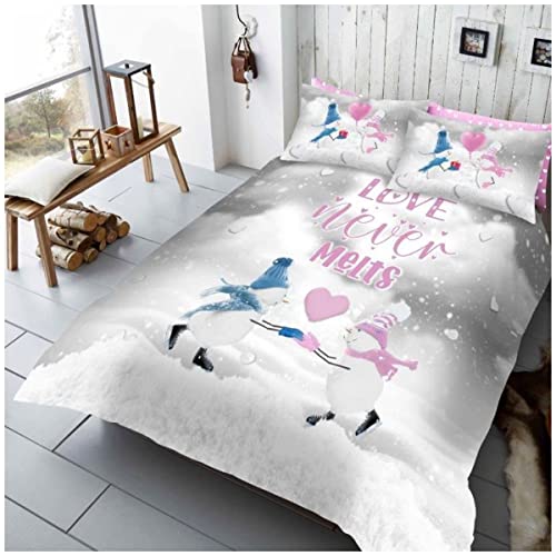 GAVENO CAVAILIA Love Never Melts Christmas Single Duvet Set, Premium Super Soft & Comfy Snow Couple Xmas Bedding, Grey, 656838-Vict-Vend
